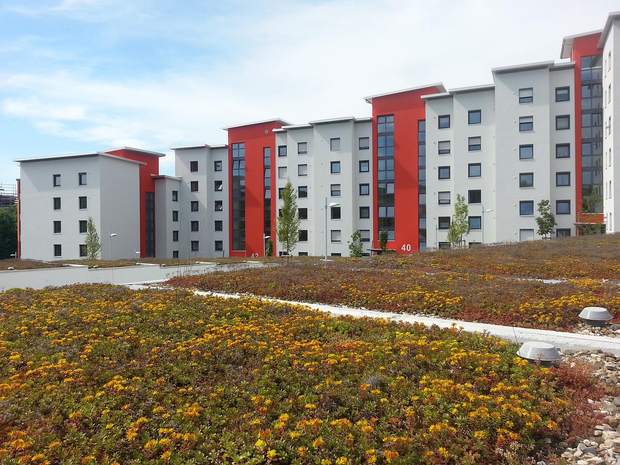 - Entwässerung: innenliegende Gullys, Notüberläufe, Gefälledämmung für sicheren Abfluss.